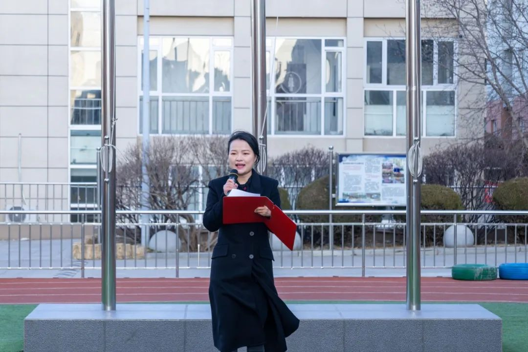 7时整,国旗班步伐铿锵、姿态昂扬,护送国旗缓缓入场。伴随着激昂雄壮的《义勇军进行曲》,五星红旗冉冉升起,在早春的晨风中猎猎招展,开启充满希望的新学期。开发区校区全体师生肃然而立,满怀深情向国旗行注目礼,表达对祖国的真挚祝福与热爱。